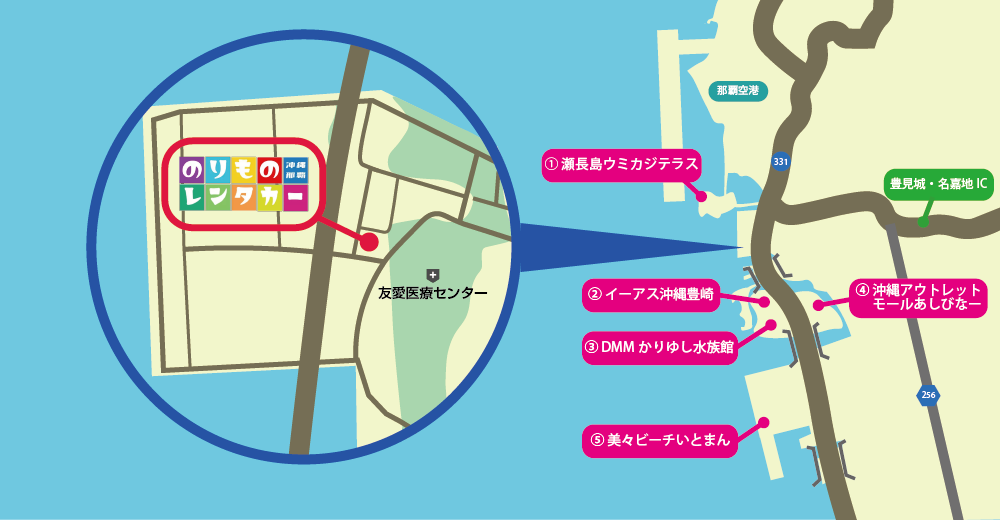 店舗周辺には観光施設も豊富!返却時間いっぱいまで、お楽しみ頂けます! 周辺施設情報はコチラ